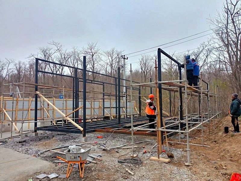 Сейчас подрядчик уже монтирует каркас здания, работы идут по графику. Ещё один важный объект появится на пляже Ахлёстышева — там строят сервисно-административный центр: основание уже залито, металлический каркас установлен. Завершить строительство планируют до конца мая.
