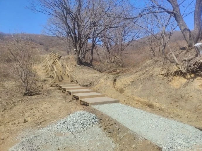 Общественные наблюдатели Находки проинспектировали ход строительства туристического маршрута «Тропа осьминога» (от бухты Прозрачной до бухты Козина). В настоящее время подрядчик приступил к работам по обустройству входной зоны со стороны бухты Прозрачная (пляж «Рица»).