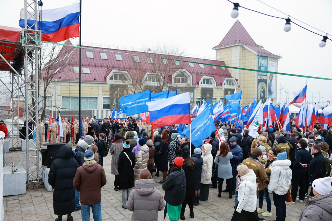 18 марта в историческом парке «Россия – моя история» во Владивостоке прошёл торжественный митинг-концерт, посвящённый 12-й годовщине воссоединения Крыма с Россией. В числе участников – коллектив министерства физической культуры и спорта Приморского края во главе с исполняющим обязанности министра Дмитрием Графом, а также представители подведомственных учреждений: Центра спортивной подготовки Приморского края, Краевой спортивной школы олимпийского резерва и Центра адаптивного спорта и адаптивной физической культуры Приморского края, а также представители спортивных федераций нашего региона.
