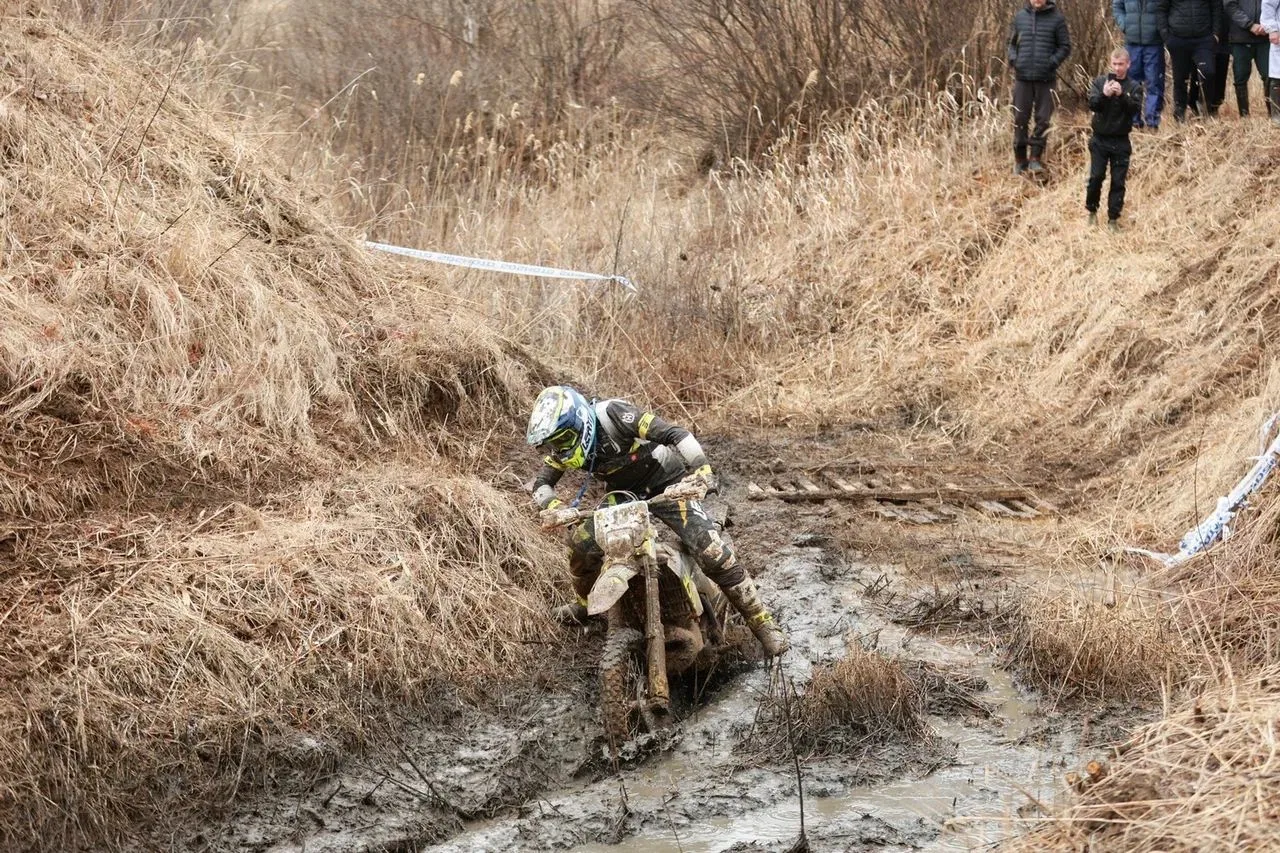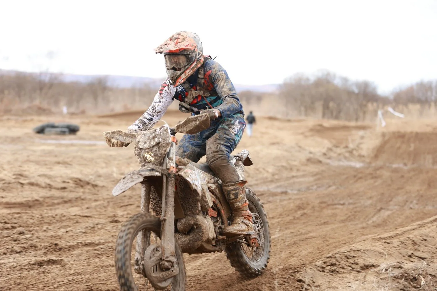 11 апреля в посёлке Раздольное прошёл первый этап чемпионата Приморского края по эндуро. Гонка сразу стала серьёзным испытанием. Проливной дождь накануне сделал трассу сложной и непредсказуемой. Покрытие быстро разбивалось, появлялись глубокие колеи, и участникам приходилось проявлять не только скорость, но и характер.